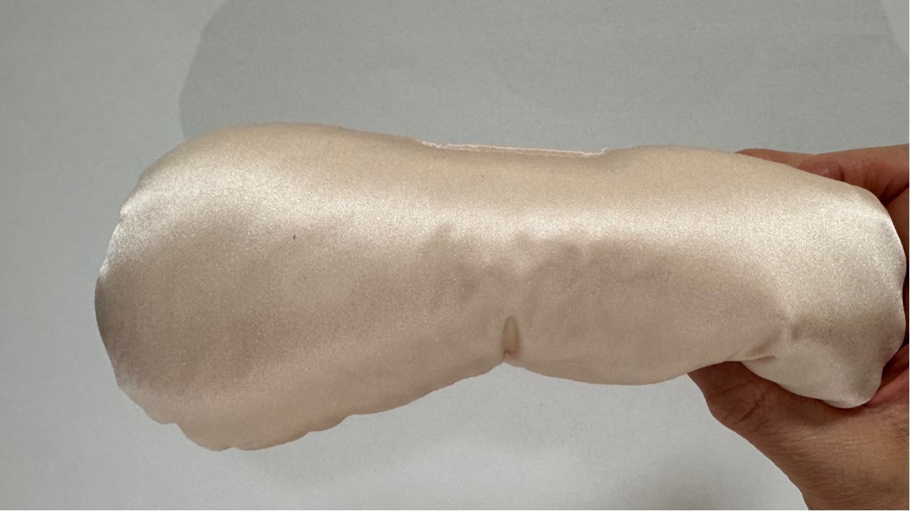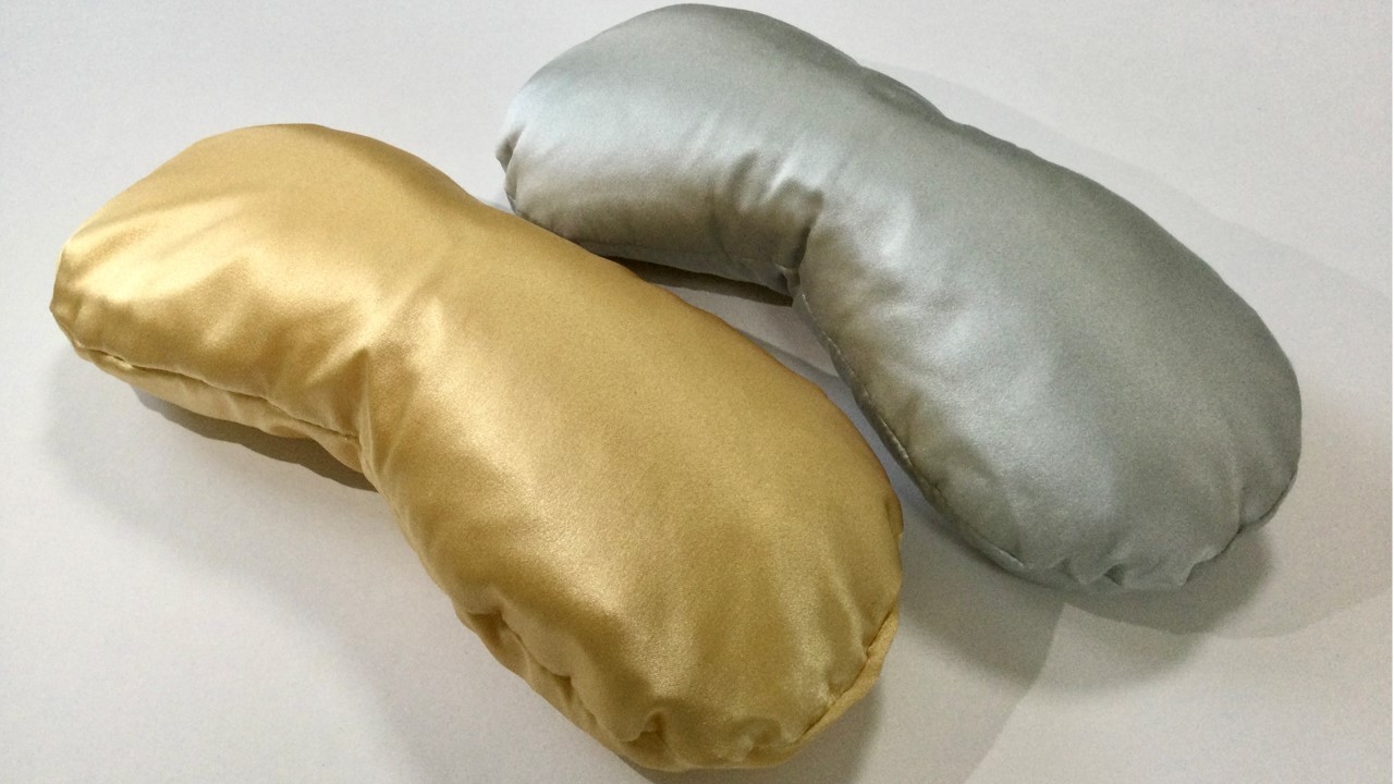 ゴムやバンドなしのeyePonは、ダウンをたっぷり詰め込んだソフトで分厚い本体を両端の小さな丸い重りがふんわりと目を包み込む役目を果たすという、まったく新しい発想のノンストレスアイマスクです。